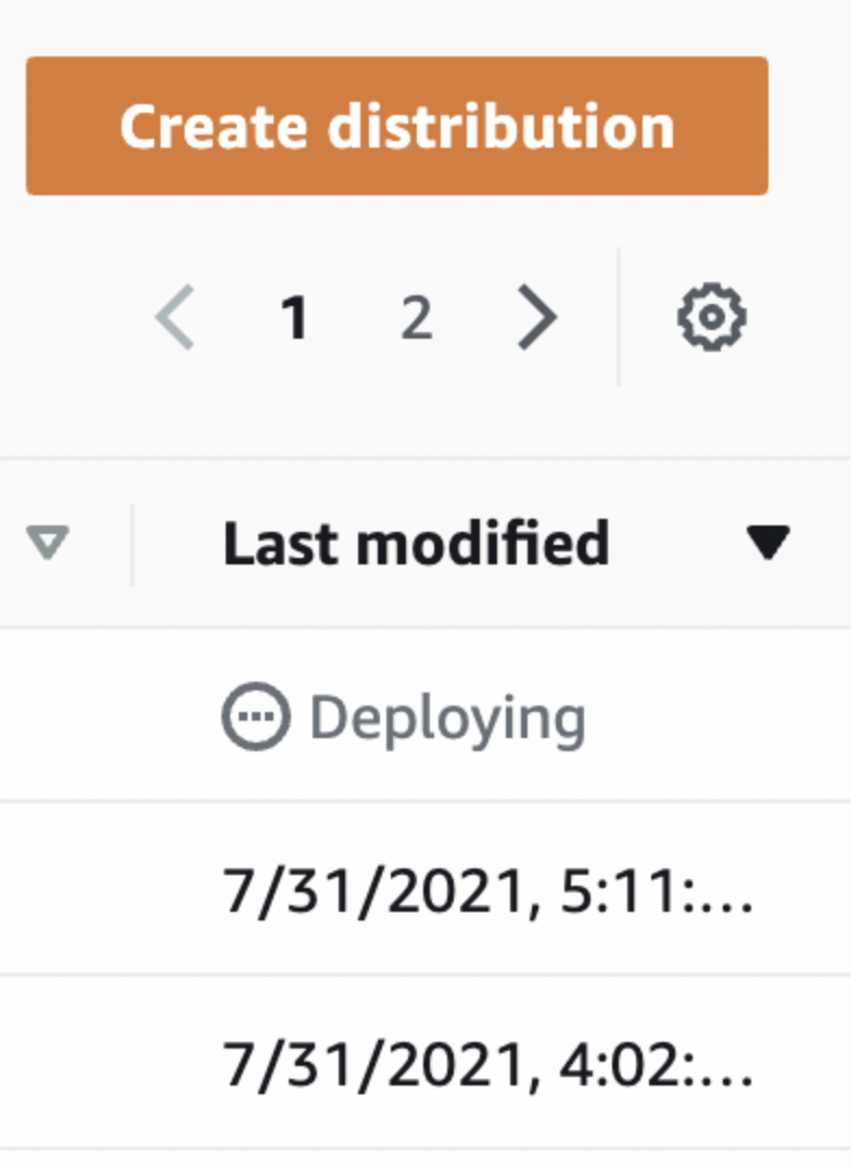 12. Distribution이 수정되면 바로 반영되지 않을 수 있다. 그럴 때는 당황하지 말고 Distribution 목록에 가서 현재 deploying이 끝났는지 진행 중인지 확인해보자.