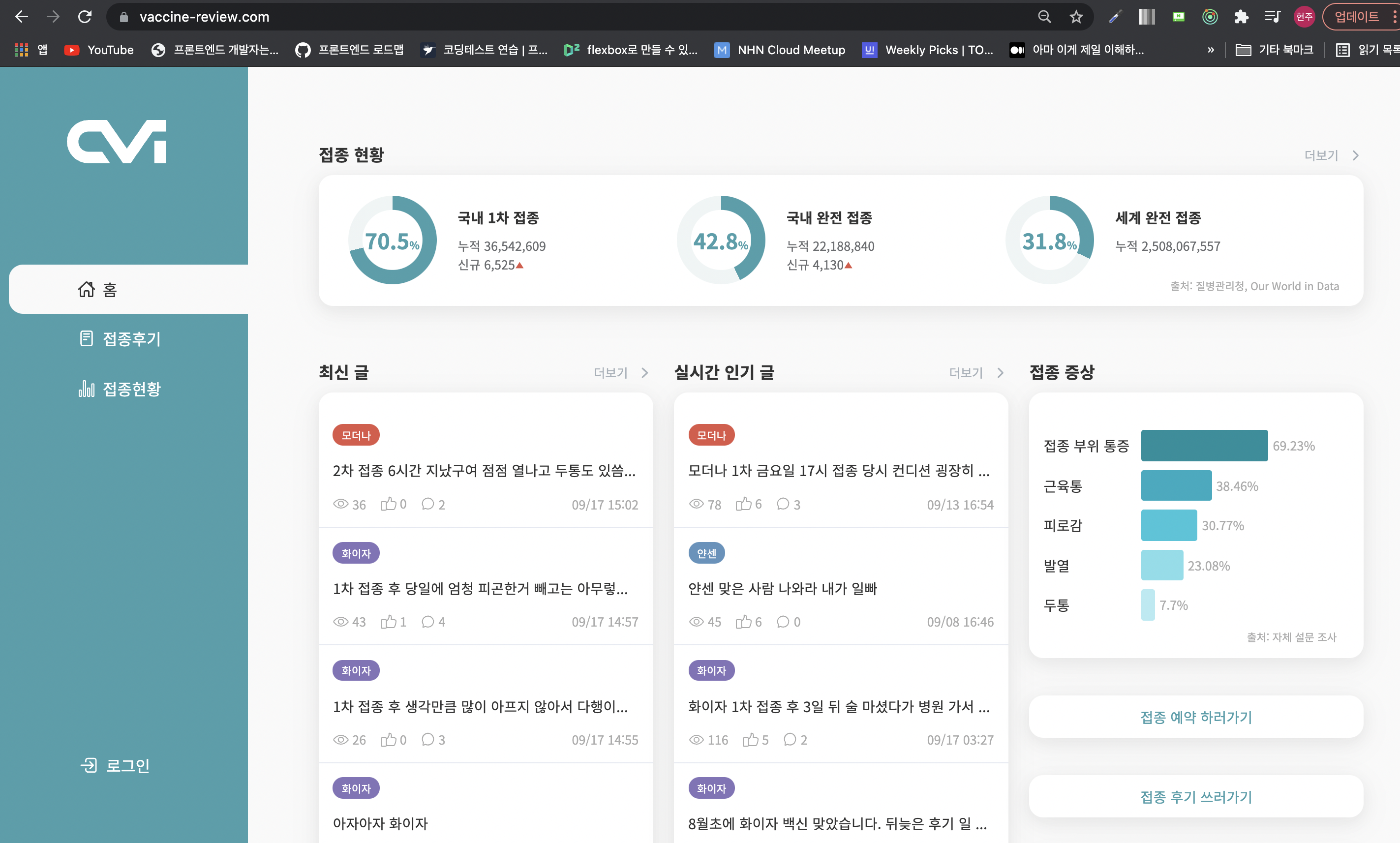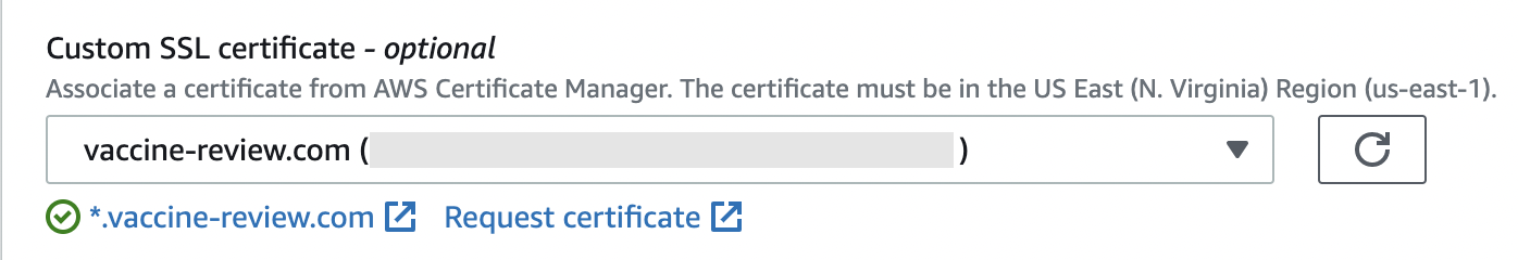 그럼 아마 이렇게 내가 구입한 도메인(vaccine-review.com)으로 서비스에 접근할 수 있을 것이다!!!!!!!!!!!! 이제 기억도 안나는 클라우드 프론트 url로 접근하지 않아도 된다 ㅎㅎㅎㅎ 얏호얏호 👍🏻