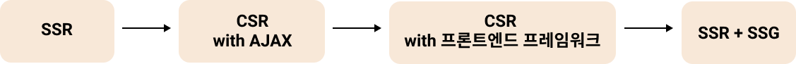 CSR의 문제를 보완하고자 다시 SSR을 찾기 시작했다. 그러면서 Next, Gatsby, Nuxt가 등장했다. 이를 이용해서 우리는 프론트엔드 프레임워크를 이용하면서 추가로 SSR을 도입할 수 있게 되었고, 그러면서 SSG라는 개념이 새로 등장했다.