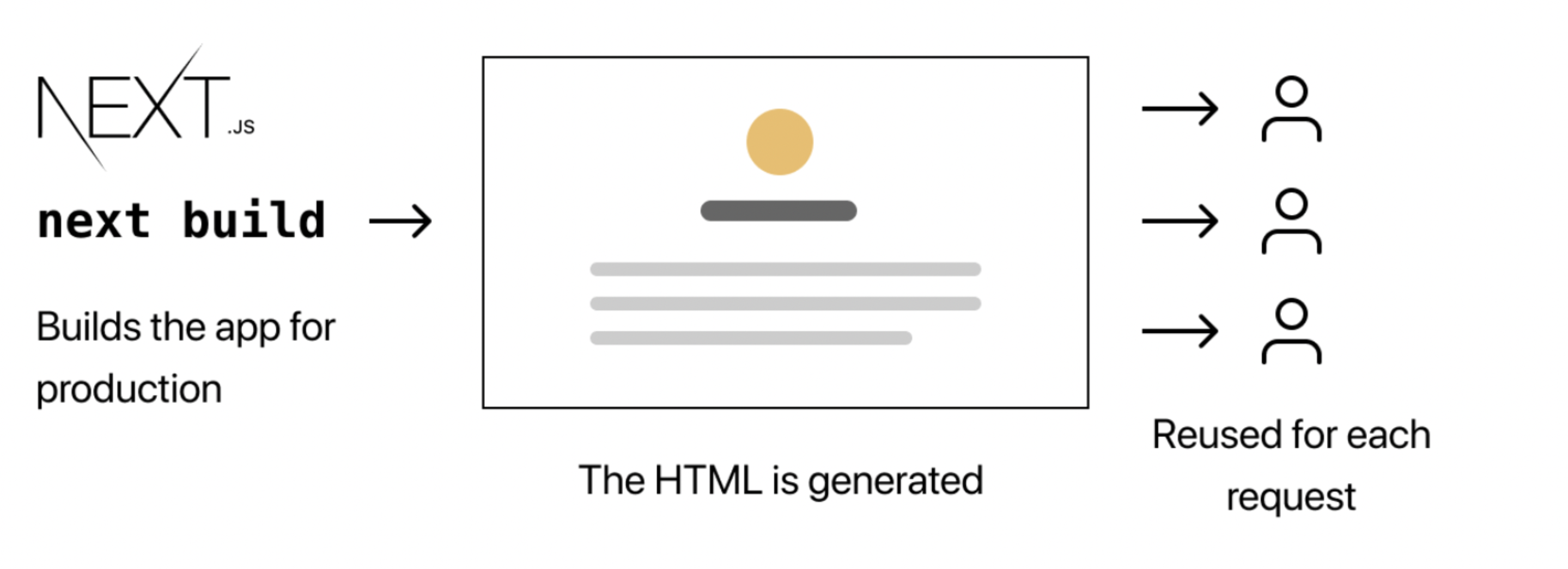 SSG 방식은 HTML을 build 타임에 각 페이지별로 생성하고, 해당 페이지로 요청이 올 경우 이미 준비된 HTML 문서를 반환한다.